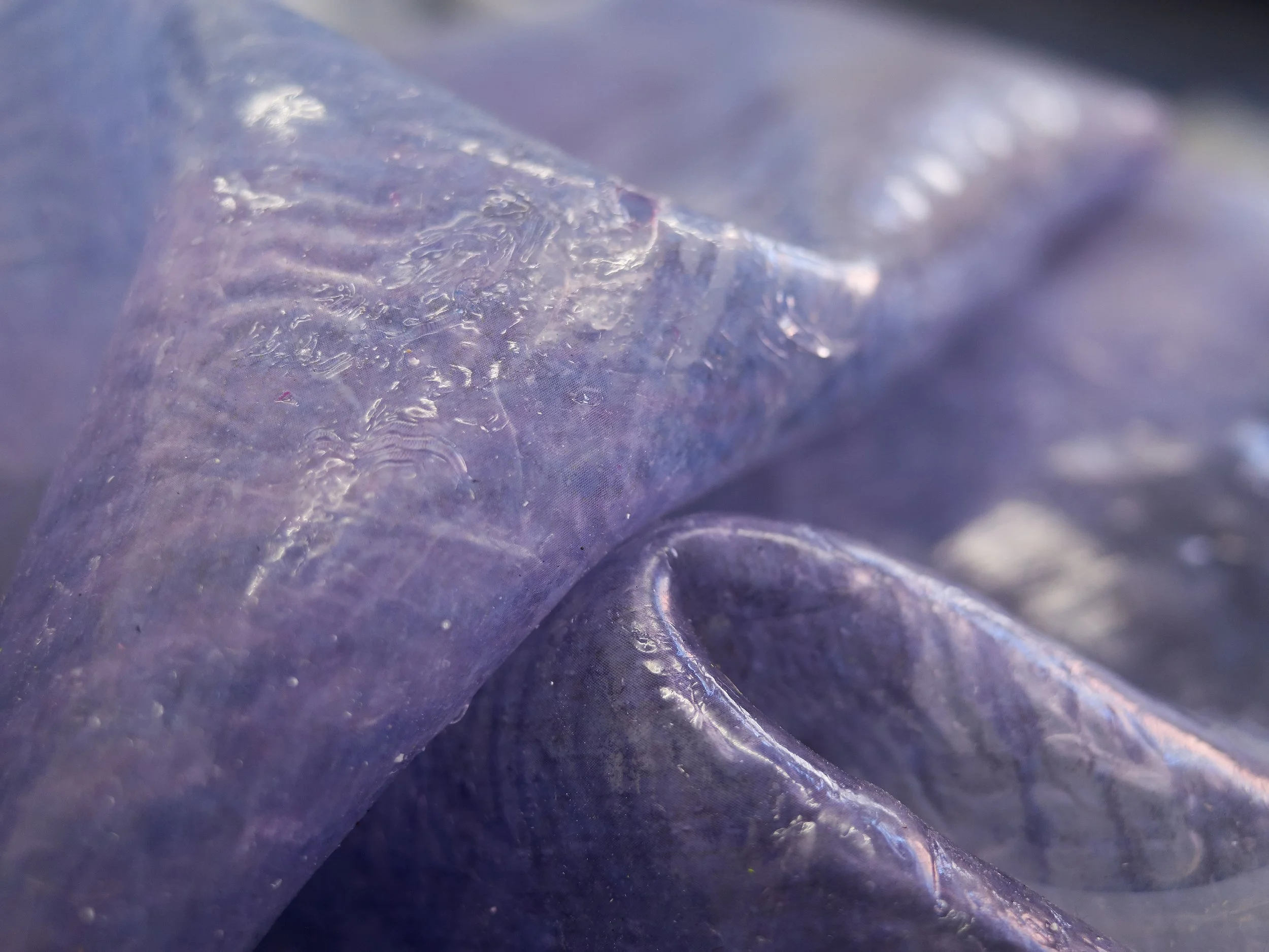 Two layer UV photo print on silicone rubber, sculpted plexiglass, plexiglass fiber.