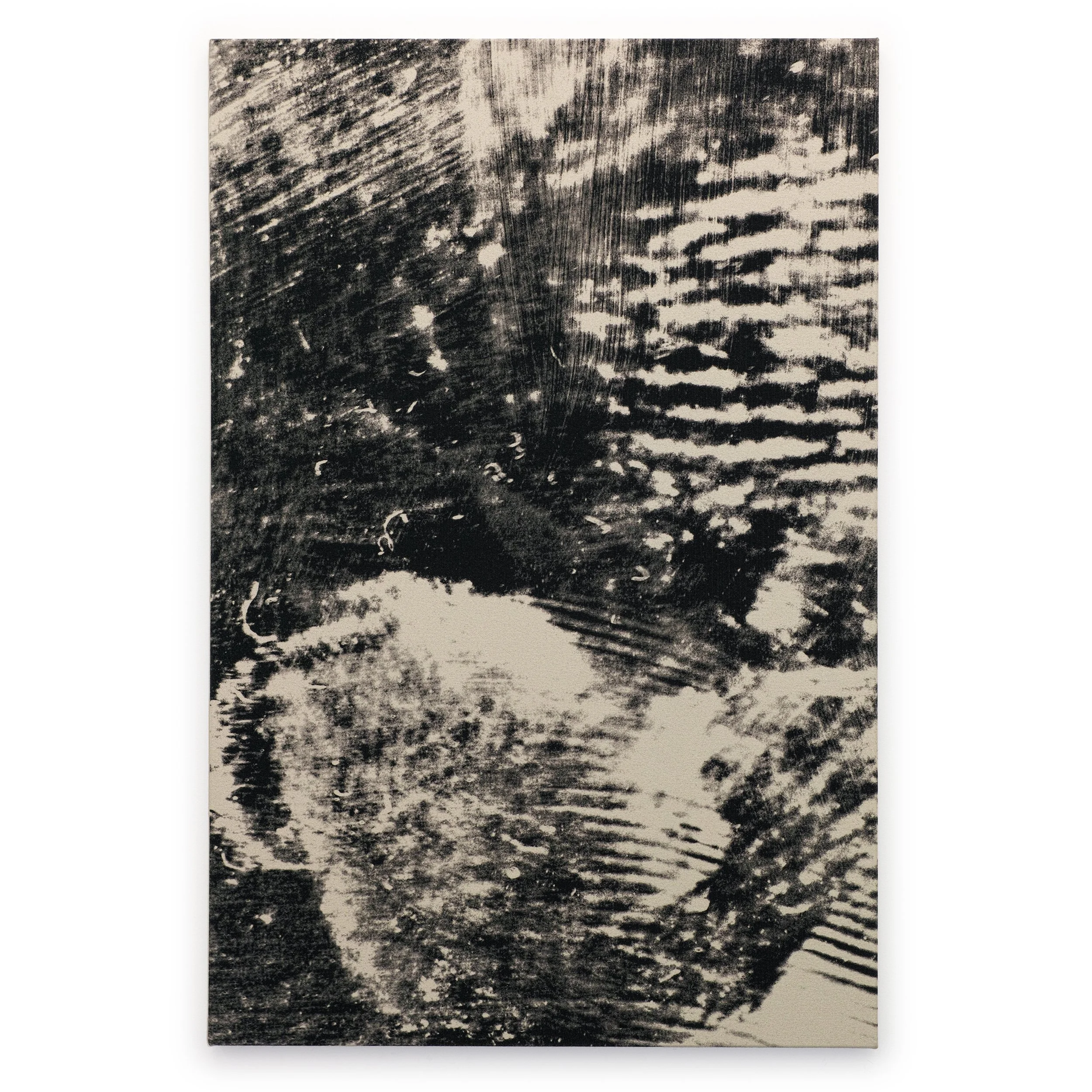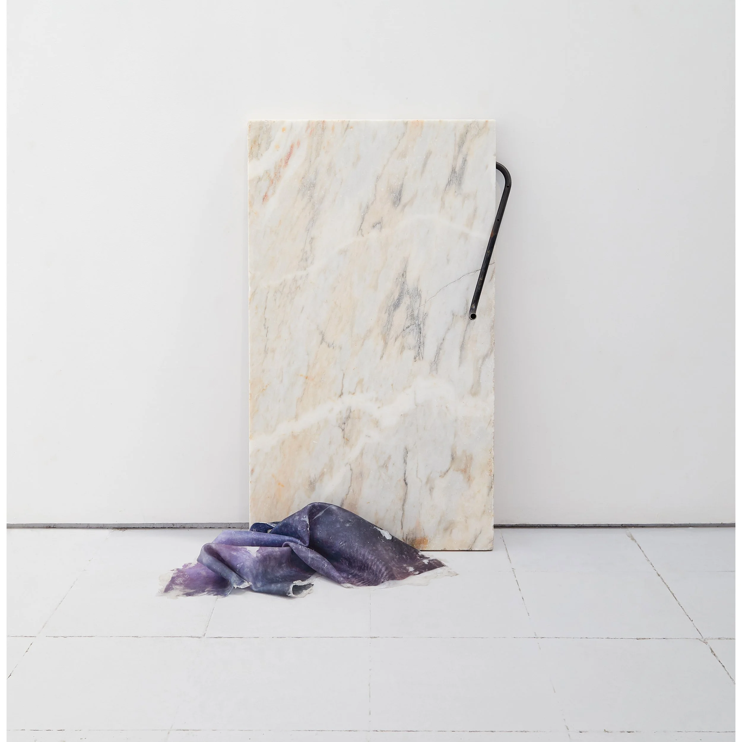 Painted steel, marble slab, silicone photo transfer monoprint.
