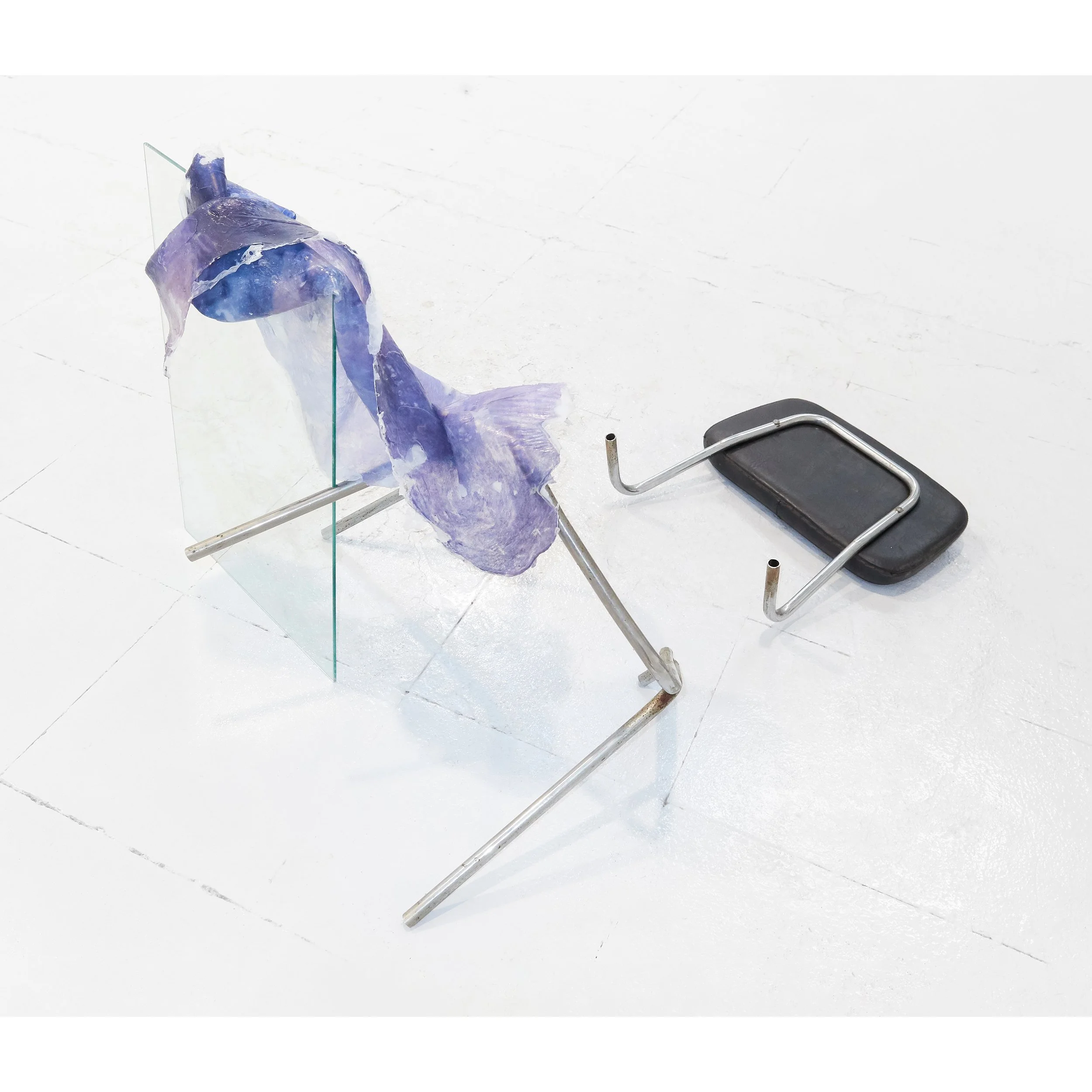 Chromed steel, leatherette, glass, silicone photo transfer monoprint.
