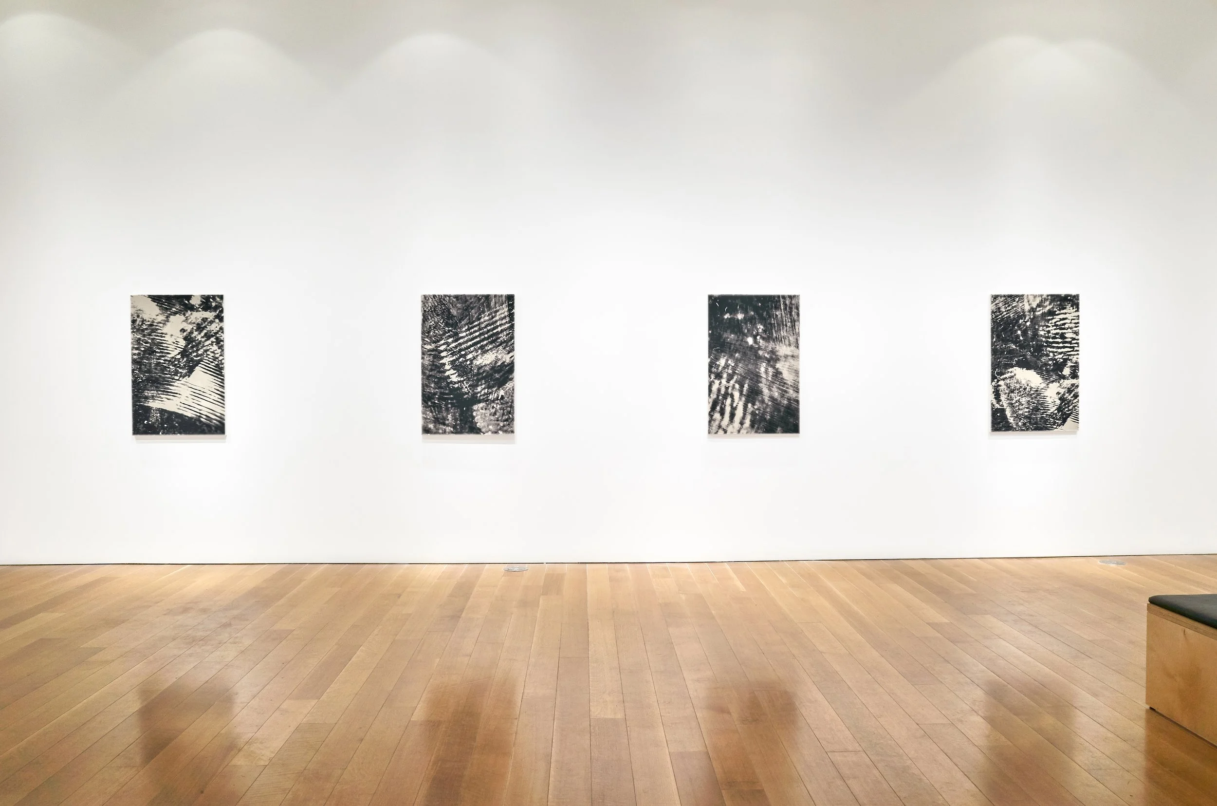 Halftone monoprint on canvas. An enlargement of marble in the floor directly outside my studio during the residency, which reminded me of the lines on my palm. ‘Visible Scars’ is an biometric identifier used throughout Homeland Security processes.