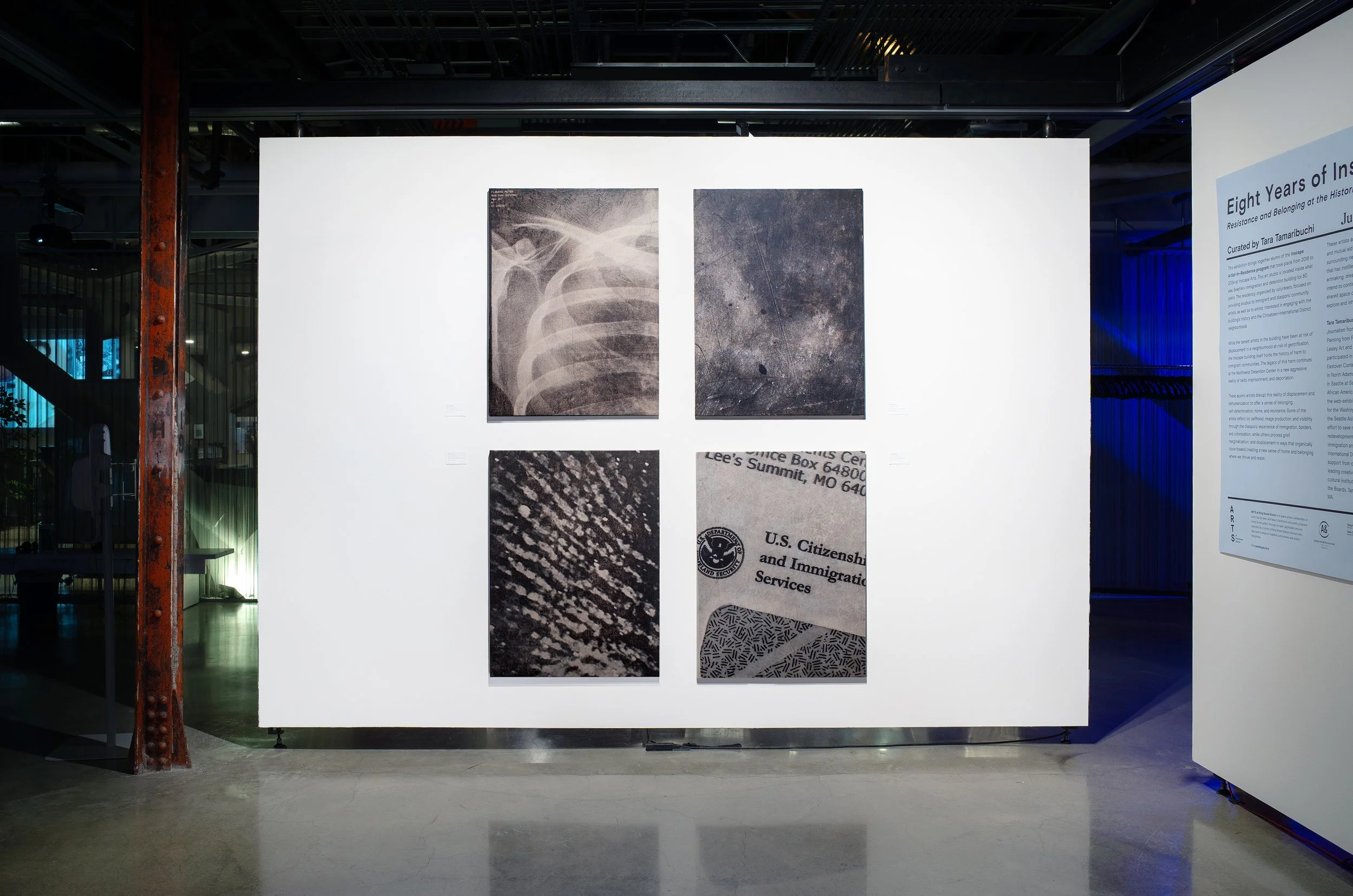 Eight Years of Inscape AiR: Resistance and Belonging out of the Historic Immigration Building brings together alumni of the Inscape Artist-in-Residence program that took place from 2016 to 2024 at Inscape Arts, the studio building that was the Seattle immigration and detention center for 80 years.